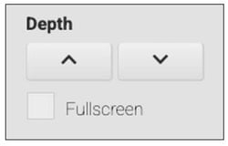 - Depth - Click the Depth up and down arrows to change the widgets position in front of or behind other elements.