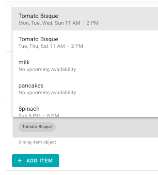 2. Select Add Item and the type-search menu will display the item & availability assigned.