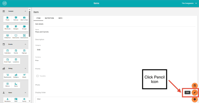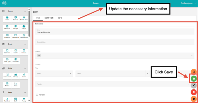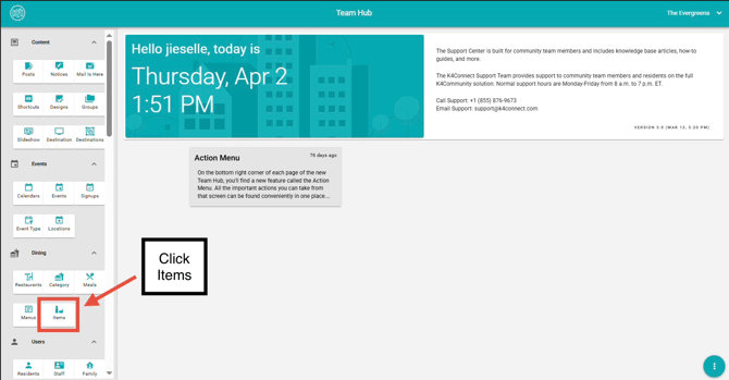 Restaurant and menu data can be created and managed in Team Hub through the Dining section, located in the left-hand navigation menu. This guide covers how to add and edit menu items.