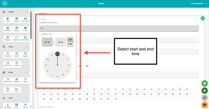 8. Choose the days the item will be available