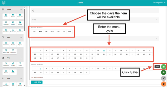Check out How to Schedule Menus for more tips on daily, weekly, and monthly recurring menu cycles.
