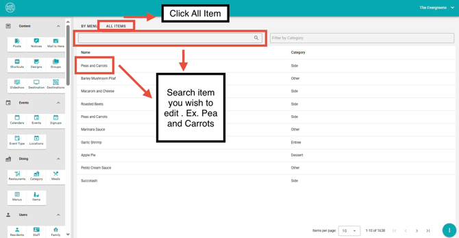 4. Search for the menu item you wish to edit.