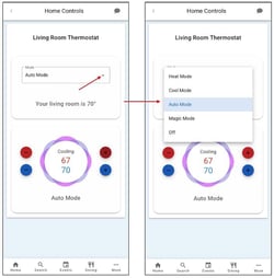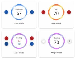To operate a thermostat, click on the device you want to change. All of the available settings will be presented on screen.
