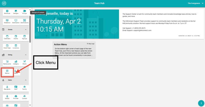 Overview: This section outlines how to update an existing menu in Team Hub.