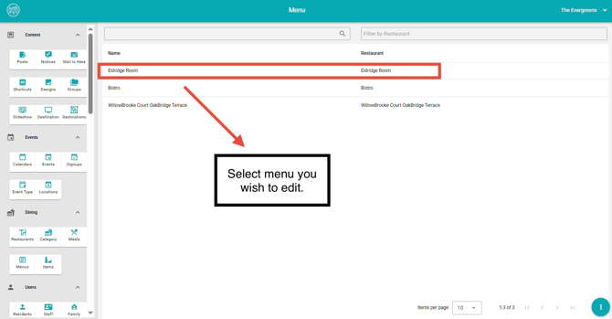 3. Select the menu you wish to edit.