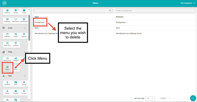 - Select the menu you wish to delete.
