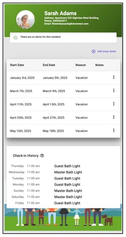 - Check-in History: A look-back at the resident's checkin status for the last 7 days.