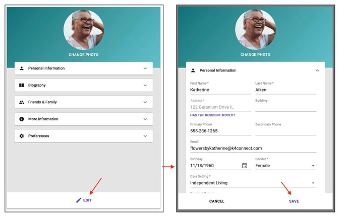 - Biography - If the resident would like to include some personal details to help their fellow residents get to know them a bit better. This can also be added by the resident in their K4Community Plus app under Profile.