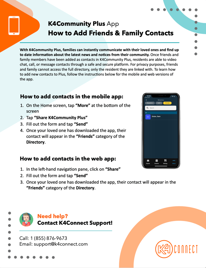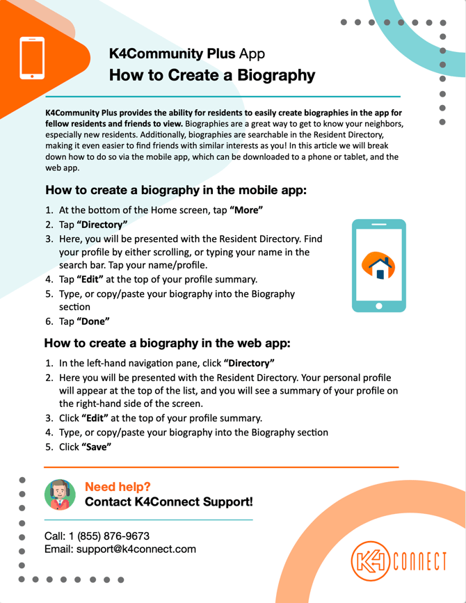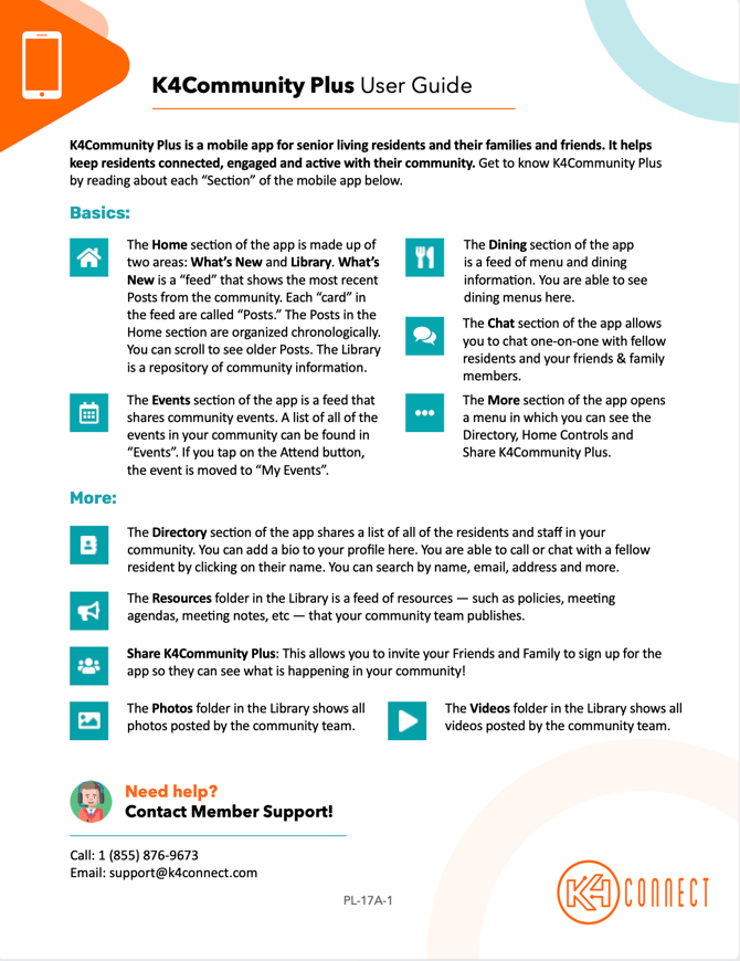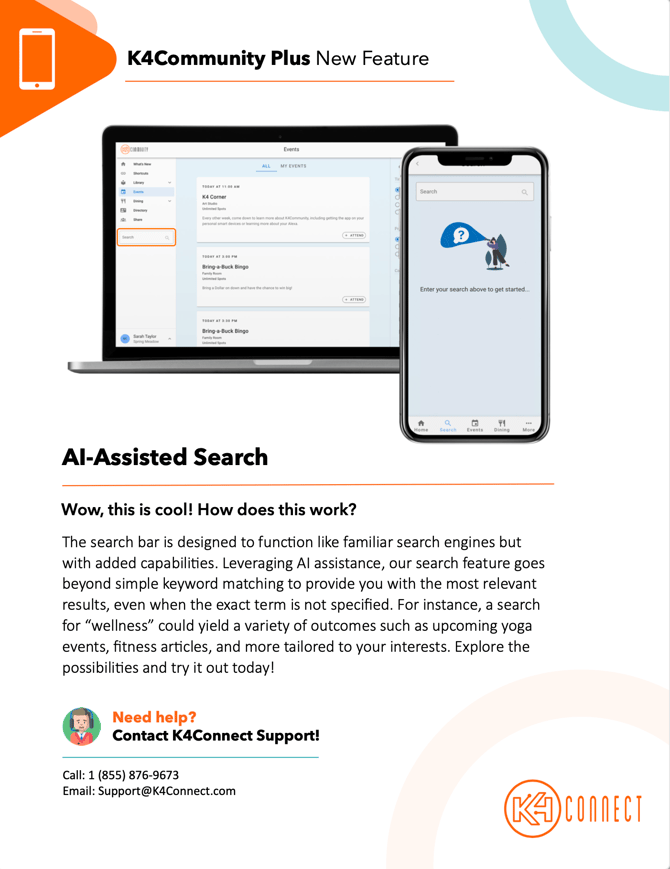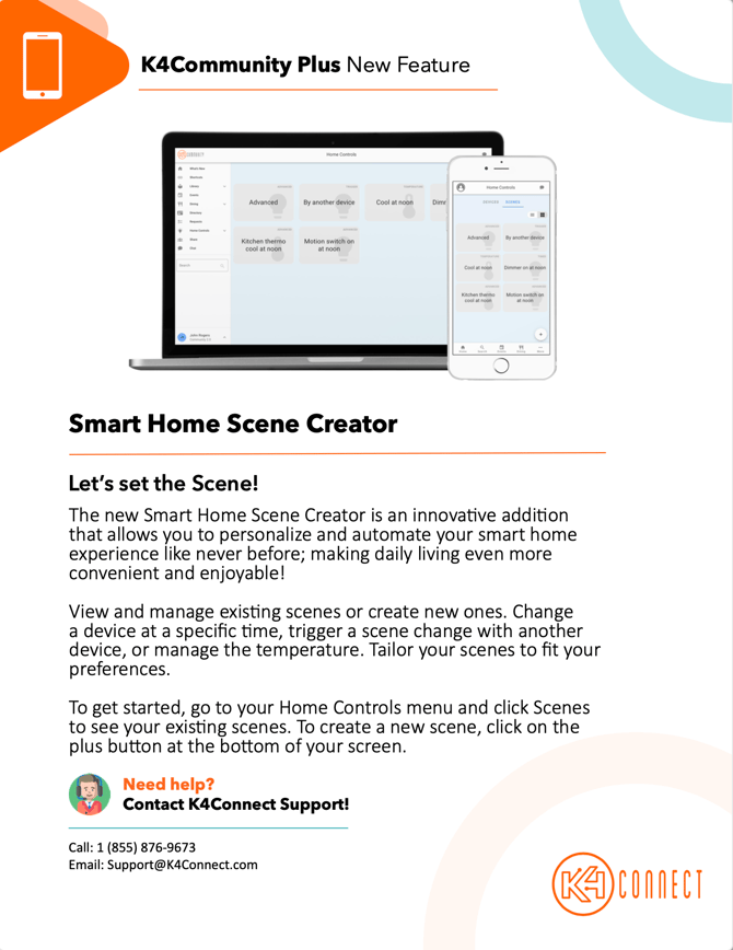 K4Community Plus App Resources Introducing Residents to K4Community Plus Requests: What is it and where can I find it? Quick Start Guide - Mobile K4Community Plus User Guide Features K4Community Plus New Feature: AI-assisted Search K4Community Plus New Feature: Smart Home Scene Creator How to How to Submit a Work Order How to Create a Biography How to Add Friends & Family Contacts