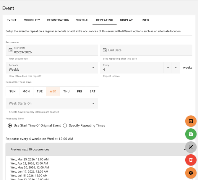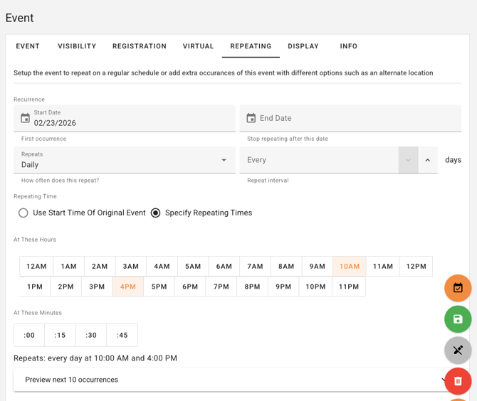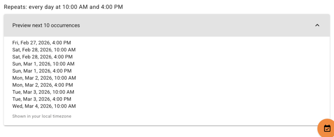 Optional preview of the next 10 occurrences