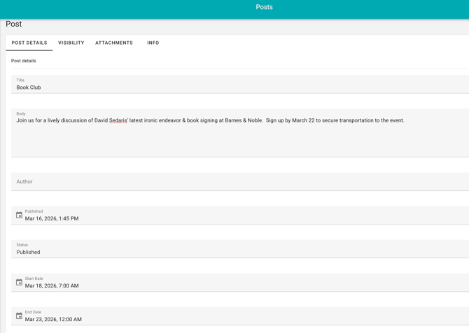 Schedule Future Posts by adding a Start Date or repeating schedule on the Post Details tab.