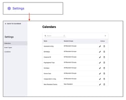 Manage your custom Calendars, Event Types, and Locations here including custom abbreviations and color codes that automatically appear on your calendar widgets.