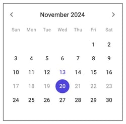 This view keeps you oriented to know what day and week you’re currently viewing. The selected day is highlighted with a blue circle, while the current date is displayed in blue font, making it easy to distinguish from the other days in the month.